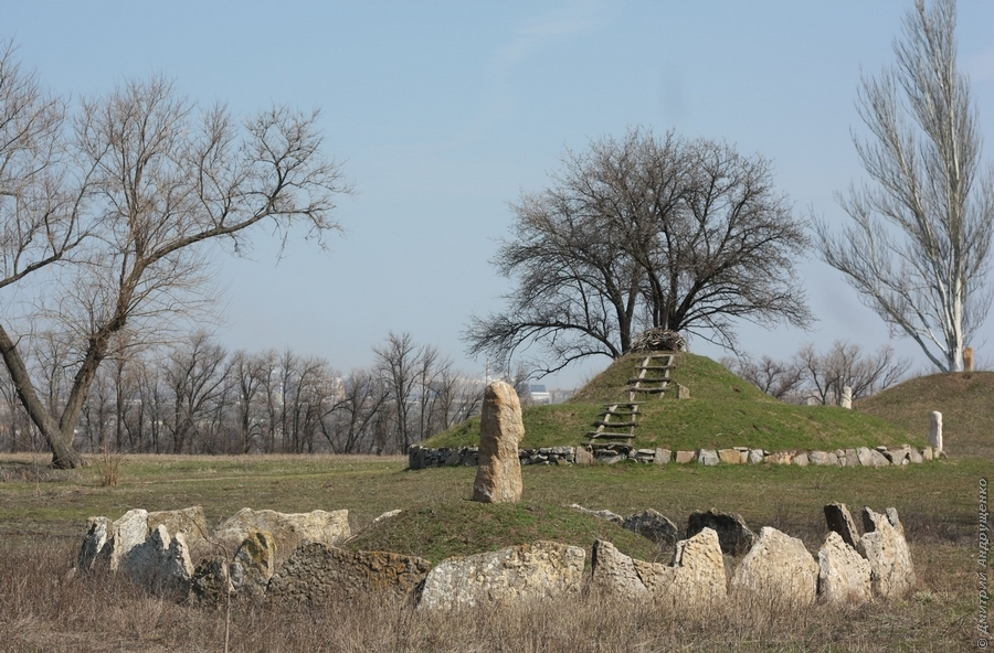 На острове Хортица, под открытым небом находится уникальный музей, который называют - Скифский стан. Около 129 курганов было когда-то очень давно на острове Хортица. Предположительно происхождения III-II тысячелетия до нашей эры были сооружены самые старые из них. От плавневой части острова – до балки Наумовой, прямо посредине Хортицы, проходил так называемый Скифский путь. Именно вдоль него располагались шестью группами курганы. В наиболее высокой точке Хортицы, высота которой достигает над уровнем Днепра - 59 метров находится восстановленная сегодня и получившая название - «Скифский стан», пятая курганная группа.
