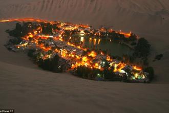 В Перу посреди пустыни Атакама является удивительный город-оазис Уакачина. В самом городе цветут пышные пальмы, есть своя лагуна, обладающий целебными свойствами, по словам местных жителей.