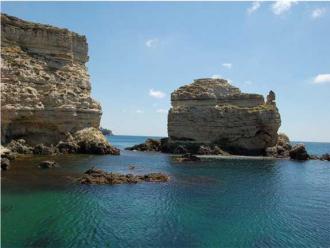 Мыс Фиолент находится в Балаклавском районе Севастополя. Он создан породами вулканического происхождения, образовавшиеся 150 млн. Лет назад. По обе стороны от мыса можно увидеть потоки застывшей лавы. Древний вулкан значительно разрушен морем. Сверху его покрывают известняки с вкраплением минералов. На побережье образовались многочисленные ниши, каменные хаосы, арки, островки. Наибольшая высота мыса - 152 метров над уровнем моря.Флора мыса представлена редкими растениями. Для морской флоры характерны красные и бурые водоросли, они свидетельствуют о чистоте открытых берегов. В море водятся дельфины, крабы, многие виды рыб, в том числе охраняемых. У подножия склонов мыса Фиолент расположена полоса пляжей со своеобразной травянистой редкой растительностью. Здесь единственное в Крыму местообитание реликта, занесенного в Красную книгу Украины - меч-травы обыкновенной.